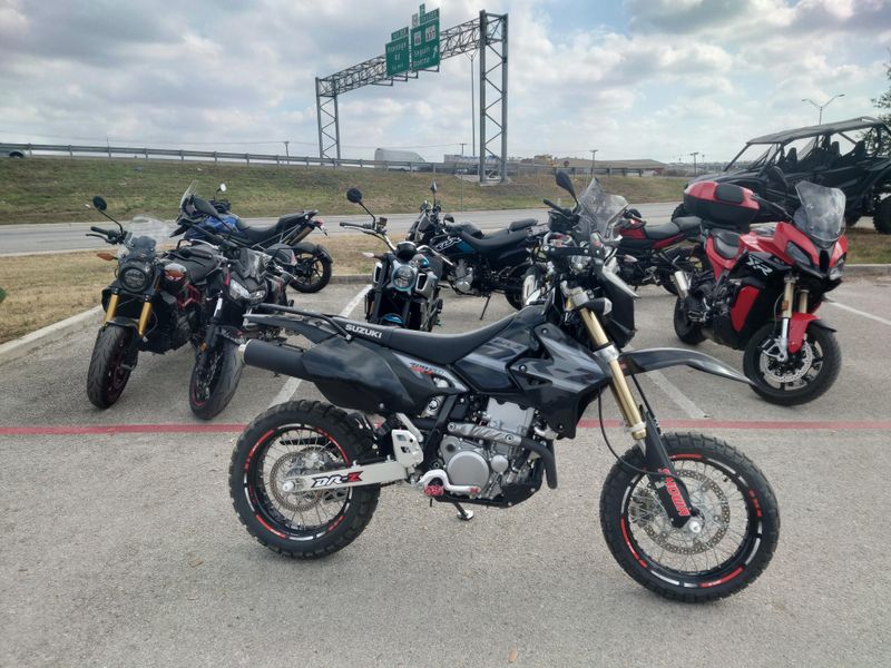 Suzuki's 2024 SuperMoto DR-Z400SM is based on the proven DR-Z400S. So, it combines Supermotard style and features in a narrow, lightweight, street-legal package. This bike brings off-road soul and fun to paved roads. It is common to take the SuperMoto down a twisty forest road, around tight canyon corners, or through commuter traffic.