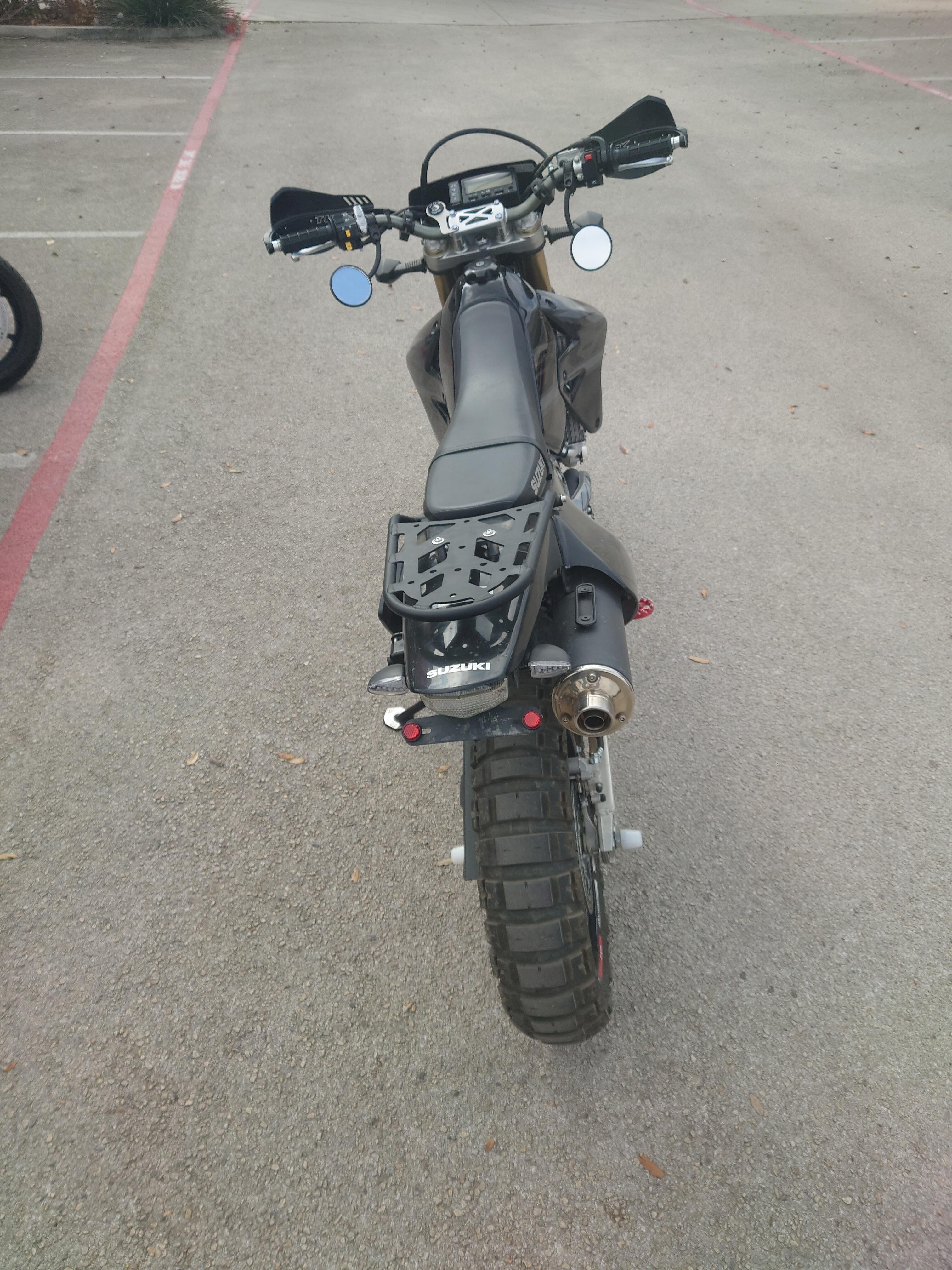 Its 398cc, liquid-cooled, four-stroke engine provides strong low-rpm torque and crisp throttle response for any of these occasions. Key differences between the DR-Z400SM and the DR-Z400S are the inverted front fork, wide spoke-style wheels, and 300mm diameter floating front brake rotor. The inverted fork contributes to less unsprung weight and improved overall handling, while the large brake and wider rims with high-grip tires offer an exhilarating sportbike experience.